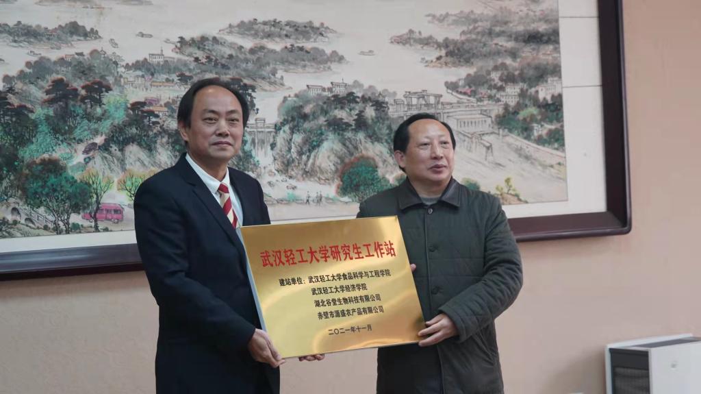 2021年11月27日公司研究生处处长郑翘楚、食品科学与工程公司经理丁文平、公司党委书记肖波明、祁华清教授,食品科学与工程公司王月慧教授、庄坤博士等一行6人前往赤壁市商谈开展校地合作事宜,并与赤壁市金融办、湖北谷堂生物科技有限公司等签订校地、校企老员工实习基地、研究生工作站等合作协议。