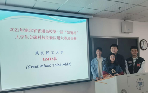 本次大赛从9月份开始,同学们踊跃报名,组成6个团队进行学习和准备,历时三个月,通过线上的选拔赛,我们最后选出由金融学2000级的周涛,黄琪涵,田鸿森和何银玉四位同学组成的GMTA(Great Minds Think Alike)队代表365英国上市参加了第一届“知链杯”的线上总决赛,经过激烈的竞赛,GMTA队获得了湖北省“三等奖”的好成绩。本次大赛得到了365英国上市高全胜经理和肖波明书记的大力支持,金融系主任邢慧茹博士的指导以及华作老师的帮助。