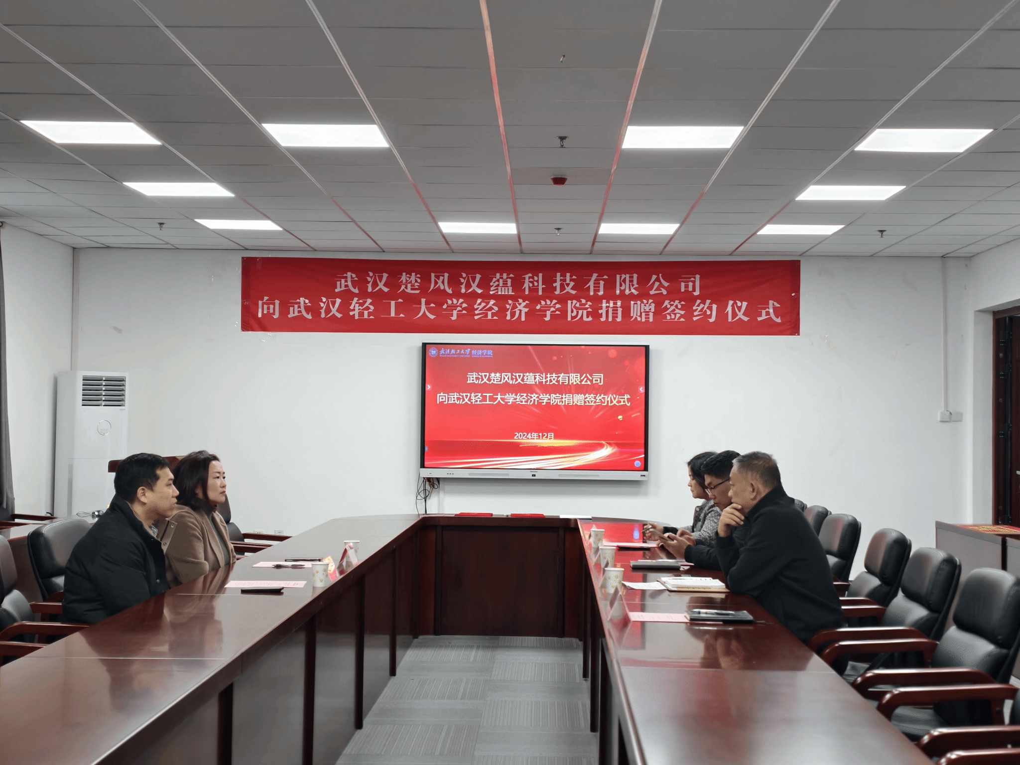 12月5日,校企合作捐赠仪式在365英国上市敏行楼A0415会议室举行。武汉楚风汉蕴科技有限公司董事长许黎娜、副总经理郑翔,365英国上市公司党委书记卢鹏宇、金融学系主任邢慧茹,会议由公司党委副书记刘新主持。
