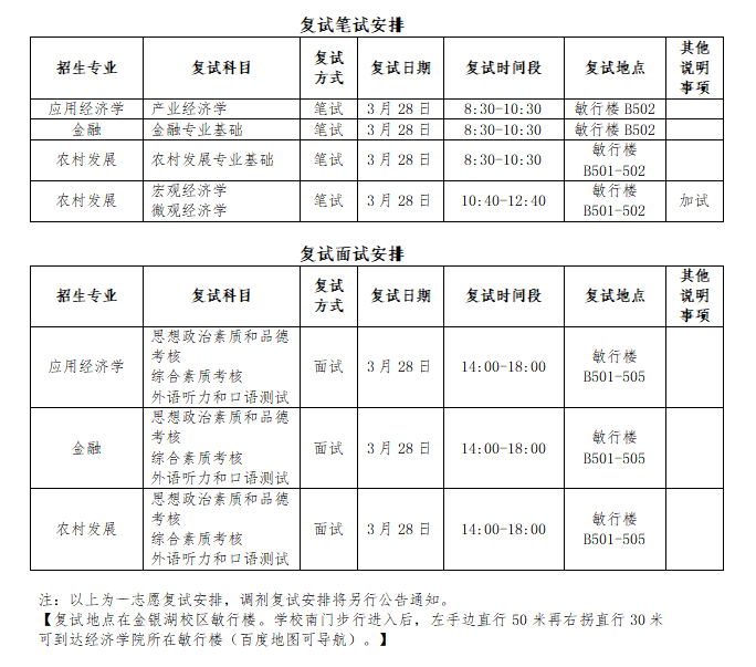 所有参加复试面试的考生在规定的时间内到敏行楼4楼B403、B405完成签到,确定笔试地点。