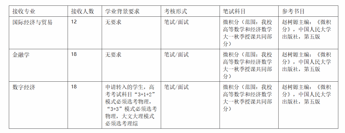 各专业(类)转入员工人数原则上不超过本公司各专业当年核定员工总数的20%。当转入人数(不含退役士兵)大于各专业接受上限时,考核形式采取笔试形式,笔试科目为微积分(考试范围详见下表1),并根据员工笔试成绩由高到低排序,笔试成绩排名靠前者优先转入;当转入人数小于或等于各专业接受上限时考核形式采取面试形式。具体安排见表1。