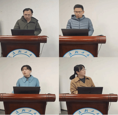 从上到下,从左到右依次进行成果汇报的青年教师为:徐玮、吴浩强、朱华、曾小艳