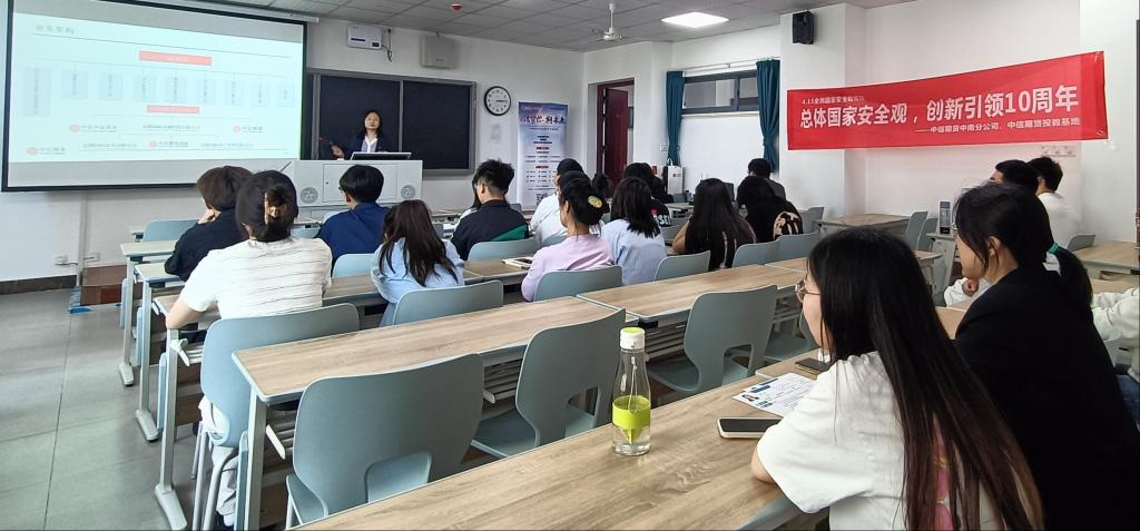 2024年是习近平总书记提出总体国家安全观10周年,4月15日是国家安全教育日。10年来该理念已经成为指导我国国家安全工作的重要原则。值此重要时刻,公司和中信期货中南分公司在2024年4月15日下午举行了“总体国家安全观,创新引领10周年”期货市场投资者教育活动。活动旨在提高老员工对期货市场的认识,提高老员工对国家安全和金融安全的意识。公司本科生、研究生代表参加了本次活动。