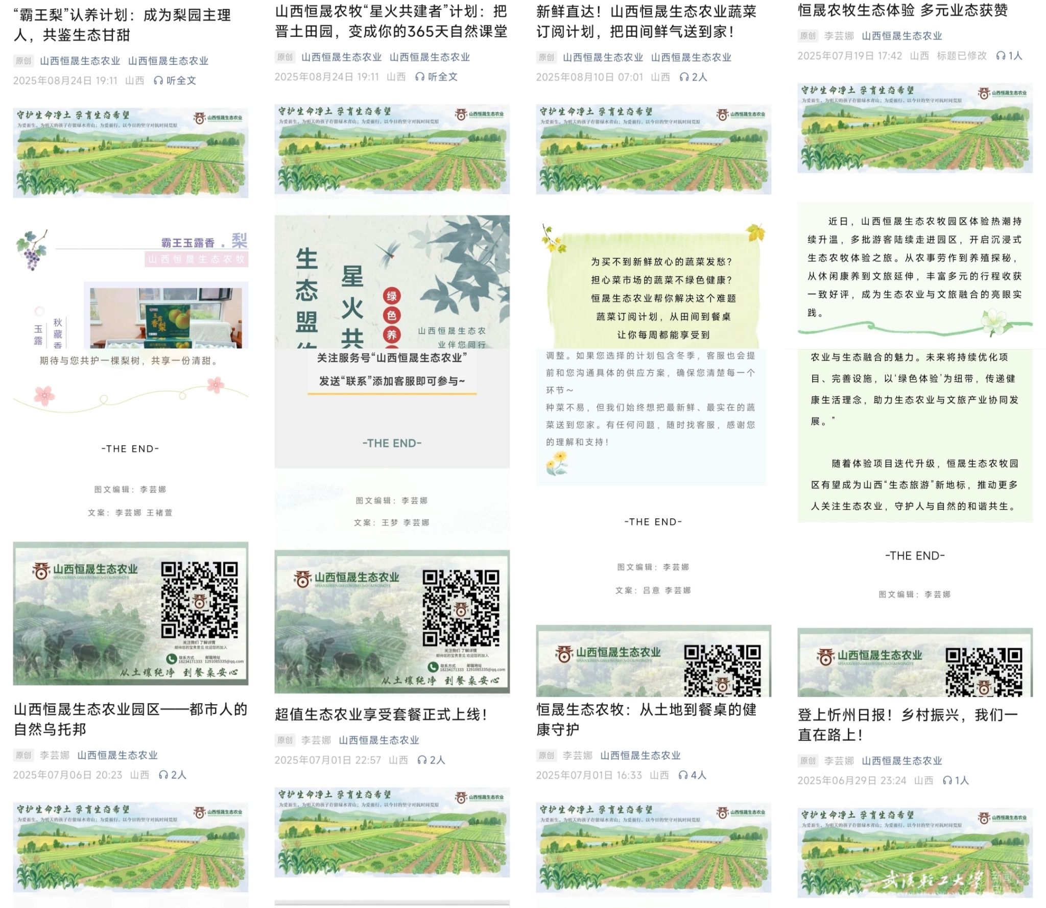 实践团充分发挥专业特长,联合山西恒晟生态农牧生态园区策划举办了“生态农牧体验日”等多场文旅活动,吸引了众多游客前来参与,既让游客感受乡村乐趣,更提升了园区和村子的知名度。同时,队员们利用抖音、微信公众号等新媒体平台进行全方位宣传推广,取得显著成效,吸引众多游客、商家咨询合作事宜。此外,实践团还开设农业技术课堂,邀请专业技术人员为村民们传授先进的种植养殖技术,帮助其掌握科学的知识技术。